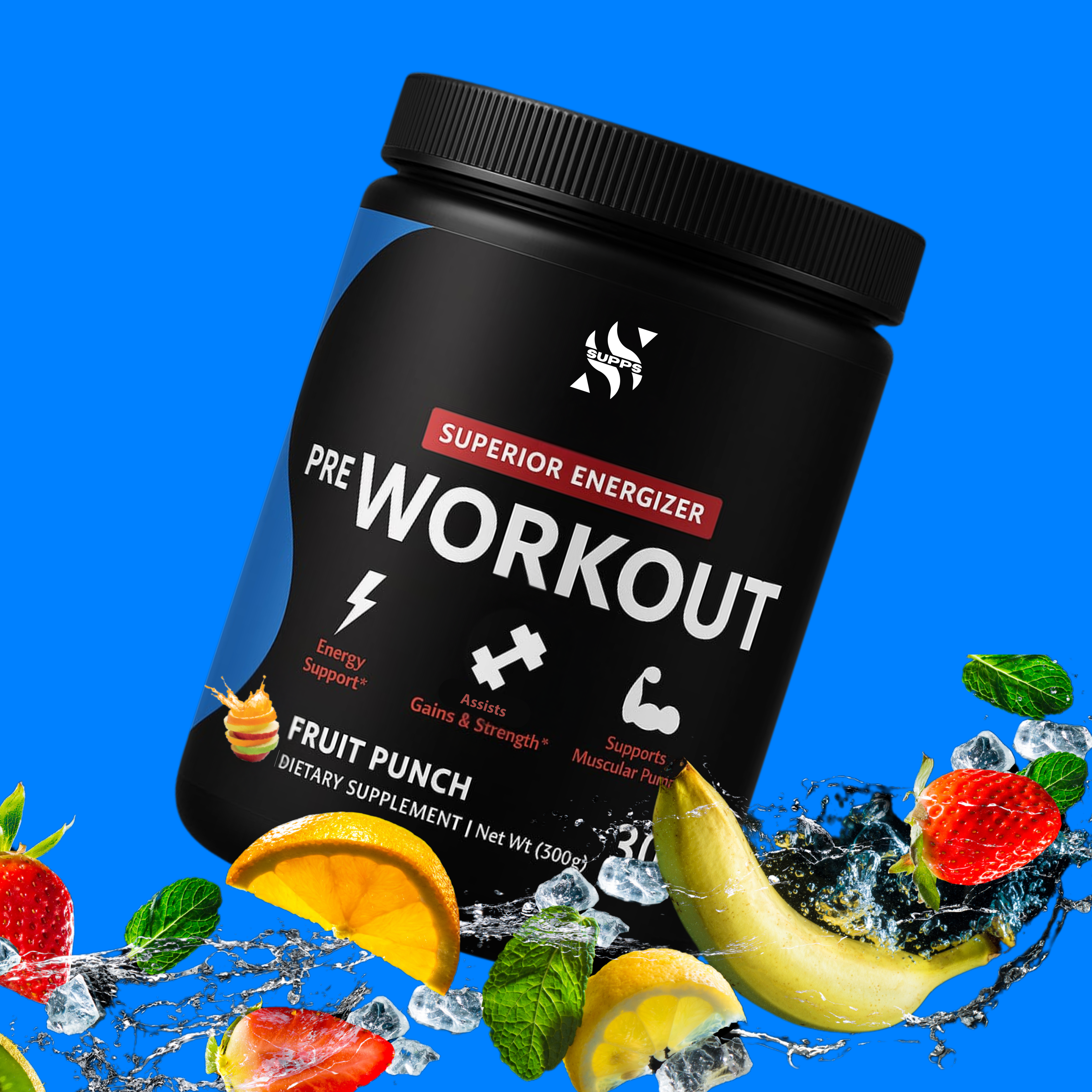 Push past your limits — every single workout. Sssupps™ Pre-Workout delivers intense, sustained energy, tunnel vision focus, and skin-stretching pumps with a science-backed blend of powerful ingredients. Whether you're crushing sets, hitting PRs, or dominating your cardio session, this formula helps you stay locked in and level up.